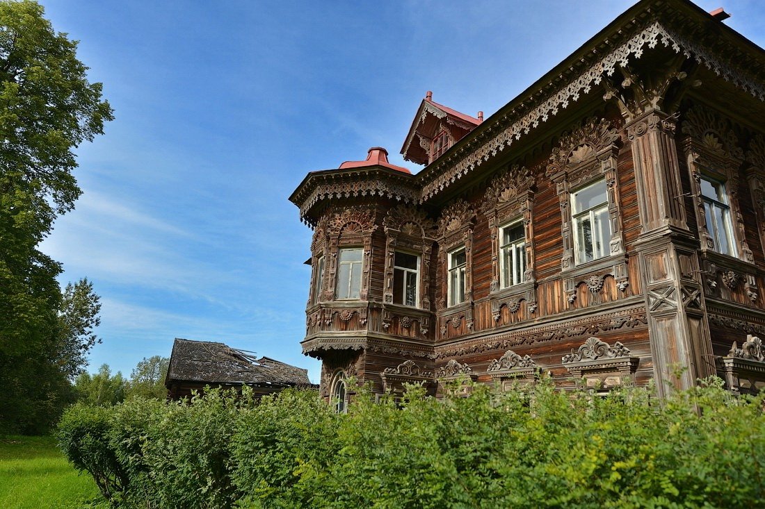 Another notable example is the Wooden Manor in Pogorelovo, built in 1902–1903 by Ivan Polyashov, a contractor who returned to his native village after a successful career in St. Petersburg. Unlike Astashovo, the Pogorelovo manor has not undergone extensive restoration.