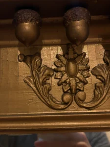 “These acorn dentil mirrors are from around 1820. It’s been painted gold, but originally it would have been gilded. When in good shape, they can fetch a couple of thousand dollars.”