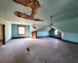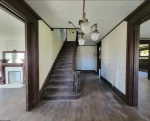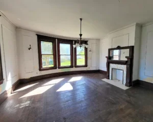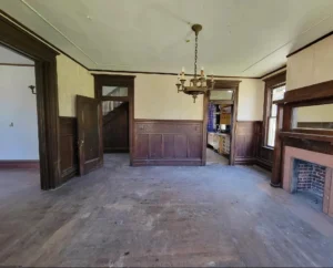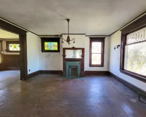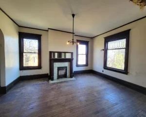 Someone go save this house! It has had a price reduction! The house was built in 1900. It is located on .55 acre in Clarksburg, West Virginia. This sure could be a grand house! The house features a covered front porch, hardwood floors, vintage light fixtures, stained glass, pocket doors, crown moulding and wainscoting. There are transom windows, leaded glass and a claw foot tub. The third floor was a ballroom. Three bedrooms, two bathrooms and 4,147 square feet